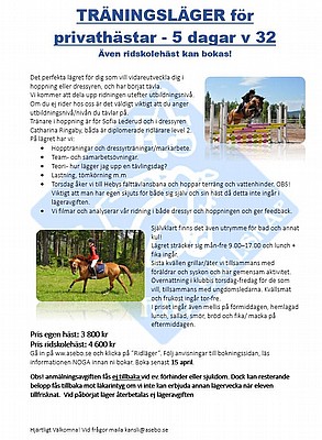 Ni kan läsa om alla aktiviteter här på hemsidan under fliken "Ridläger". All information hittar ni även på vår Facebook sida. Har ni frågor, kontakta kansli@asebo.se